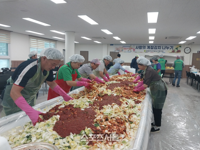 [스포츠서울ㅣ평창=김기원 기자] 18일 용평면 남녀새마을지도자협의회(회장 최기철, 정해옥)는 금송회관에서 회원 30명이 전날 배추절임 작업을 시작으로 이틀 동안 정성껏 만든 계절 김치와 불고기 등 밑반찬을 관내 저소득층 250명에게 배달했다.