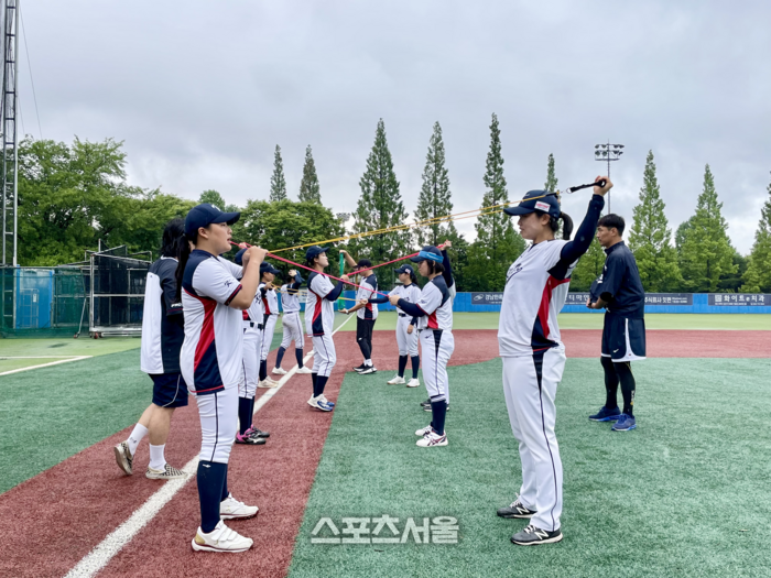 전국적으로 폭우가 쏟아진 가운데, 창원도 예외는 아니었다. 대표팀은 지난 16일 창원에서 활동하는 여자 사회인 야구팀 ‘창미야’와 친선경기를 갖기로 했으나, 줄기차게 내리는 장맛비에 경기가 아쉽게 무산됐다.