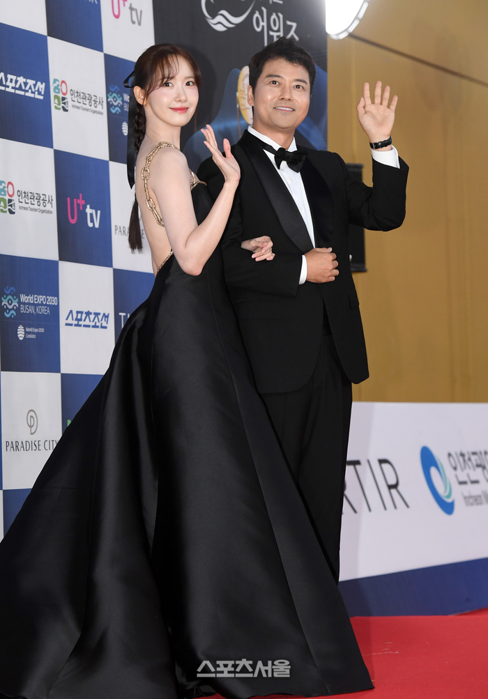 가수 겸 배우 임윤아(왼쪽)와 방송인 전현무가 19일 인천 파라다이스시티호텔에서 열린 제 2회 청룡시리즈 어워즈에 참석하면서 레드카펫을 밟고 있다. 임윤아와 전현무는 시상식의 MC를 맡았다. 2023. 7. 19. 인천 | 박진업기자 upandup@sportsseoul.com