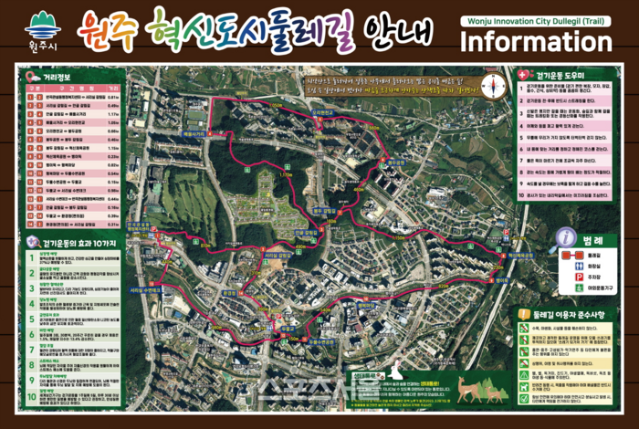 23일을 시작으로 매월 첫 번째, 두 번째, 세 번째 일요일 오전 10시에 두물수변공원에 모여 총 16구간으로 구성된 혁신도시 둘레길을 걷는다.