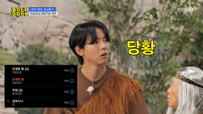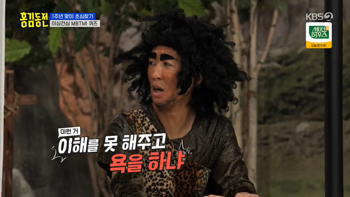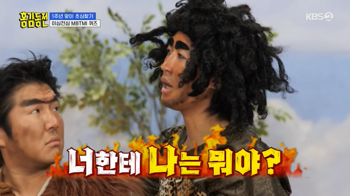 20일 방송된 KBS2 ‘홍김동전’에는 1주년 특집으로 원시시대 편이 그려졌다. 홍진경, 김숙, 조세호, 주우재, 장우영은 원시인으로 분장했다.