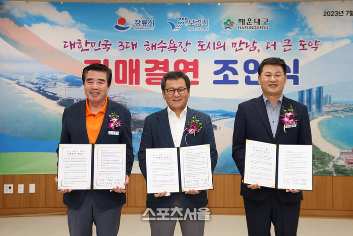 [스포츠서울ㅣ강릉=김기원 기자] 강릉시는 대한민국 3대 해수욕장 소재 도시인 충남 보령시(시장 김동일), 부산 해운대구(구청장 김성수)와 지난 22일(토) 충남 보령머드테마파크에서 자매결연 협약을 맺었다고 밝혔다.