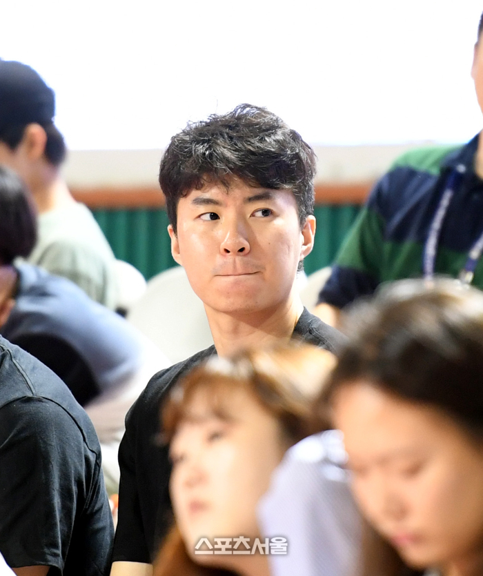 NBA에서 호주리그로 이적한 국가대표 포워드 이현중이 23일 잠실학생체육관에서 열린 2023 남자농구 국가대표 평가전 일본과 2차전을 지켜보고 있다. 2023. 7. 23. 잠실학생 | 최승섭기자 thunder@sportsseoul.com