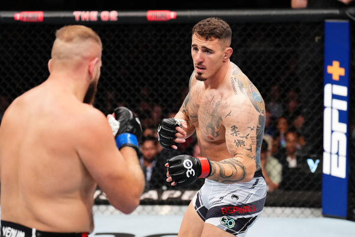 UFC 헤비급 랭킹 5위 톰 아스피날(30·영국)은 23일(한국시간) 영국 런던 O2아레나에서 열린 ‘UFC 파이트 나이트: 아스피날 vs 티부라’ 메인 이벤트 헤비급 경기에서 랭킹 10위 마르신 티부라(37·폴란드)에 1라운드 1분 13초 펀치에 의한 TKO승을 거뒀다.
