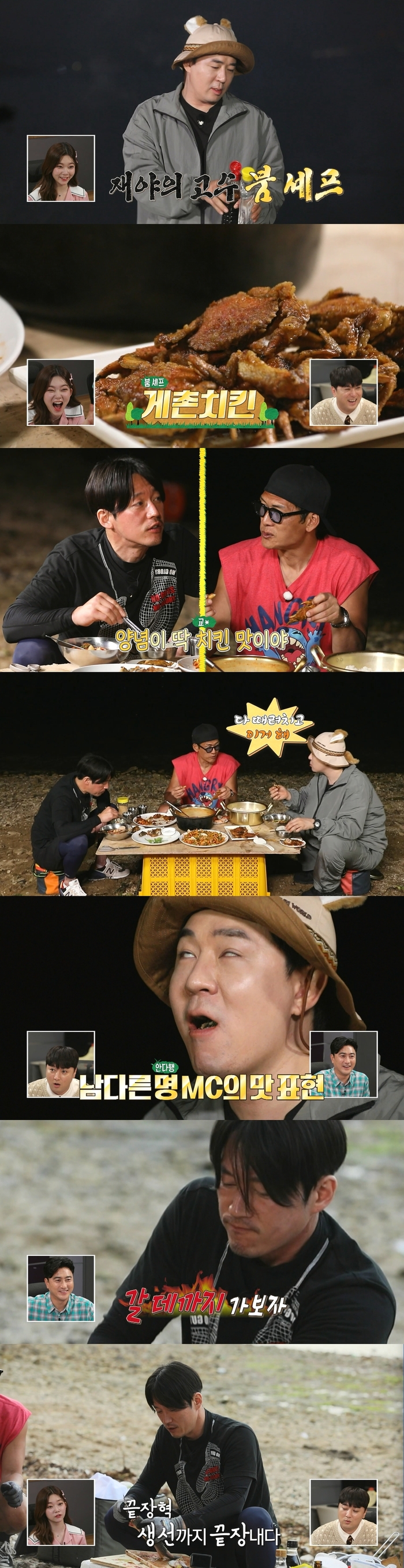 이날 붐, 박준형, 장혁이 섬에서 마지막 만찬을 만든 가운데 붐은 특별한 양념으로 볶은 게요리를 선보인다.