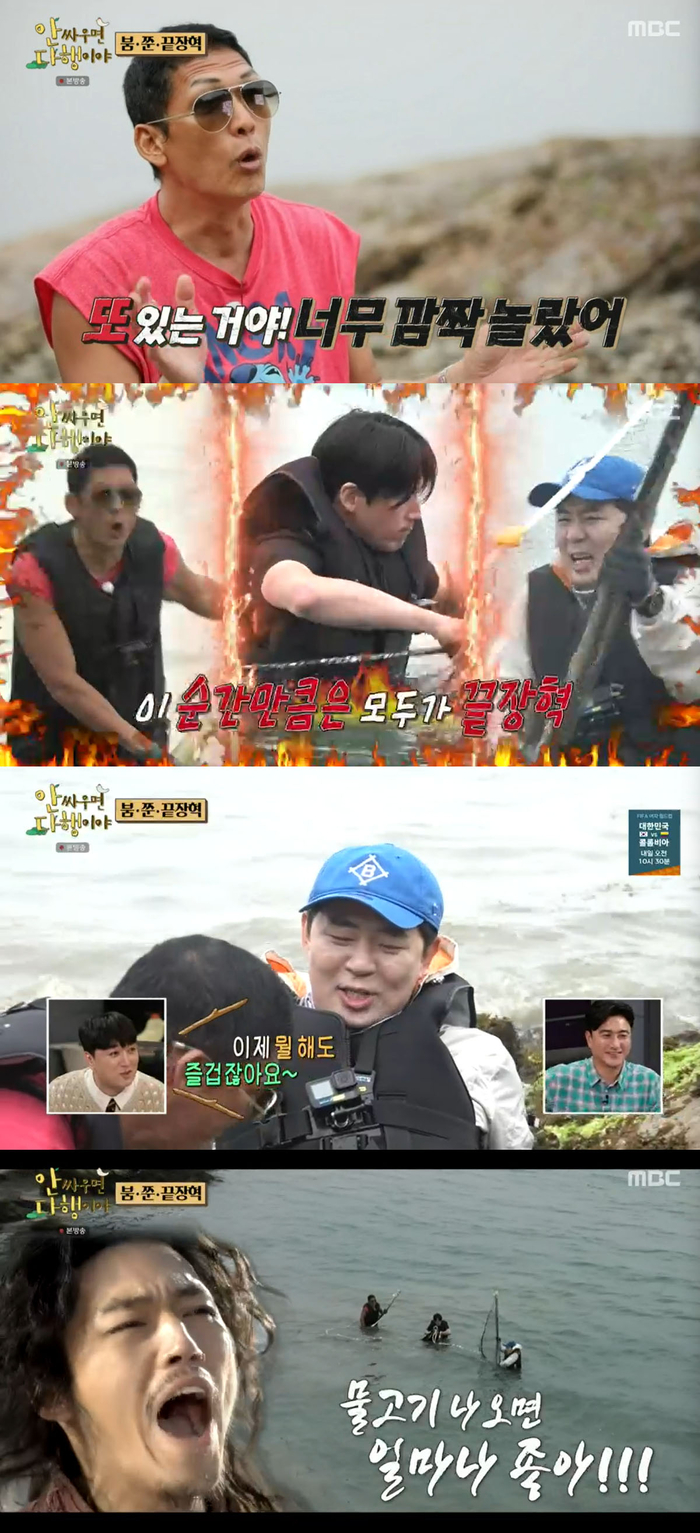 [스포츠서울 | 박효실기자] 아무도 못말리는 장혁의 승부욕으로 섬 먹거리 사냥이 이어진 가운데, 삼형제가 족대잡이로 숭어낚시에 성공했다.