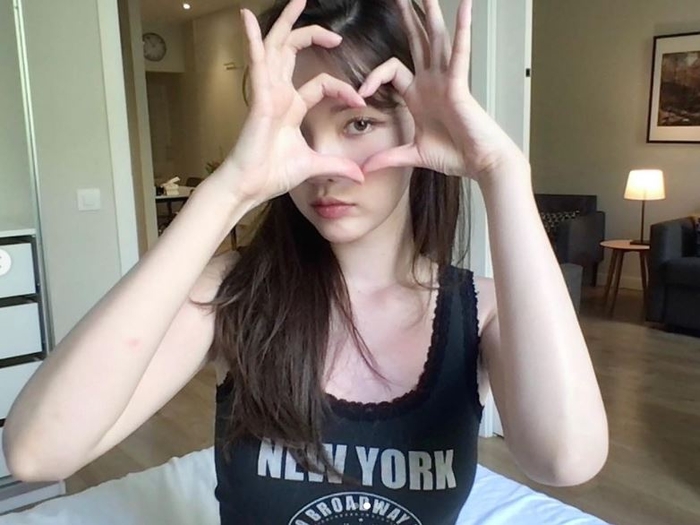 또 다른 사진에는 두 손으로 하트를 그리는 모습이 담겼다. 사랑스러움이 잔뜩 묻어난다.