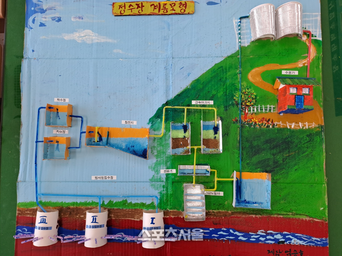 [스포츠서울ㅣ영월=김기원 기자] 영월군은 상하수도사업소 정크 아트 갤러리를 조성했다고 25일 밝혔다. 상하수도사업소 상수도팀장 윤영진은 마을상수도 관리 담당자인 엄승호 주무관과 마을상수도 점검이 불가능한 우천 시간대를 이용하여, 정수장 처리 계통도 모형과 빗물받이 담배 꽁초 투기 금지 홍보물 등을 종이컵, 빨대, 종이 박스 등을 사용하여 제작했다.