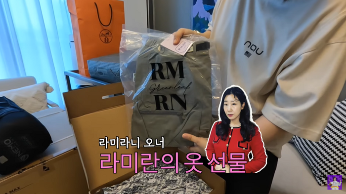 이어서 “라미란 씨가 옷 브랜드를 냈다. 아무도 모르게. 왜 그런지 모르겠다”라고 깜짝 발표해 눈길을 끌었다. 김숙은 “RM RN, 라미라니다. 저한테 선물을 보내주셨다. 근데 콘셉트가 되게 특이한 게 캠핑 의상 비슷하지만 미란이가 딱 좋아하는 스타일”이라고 소개했다.
