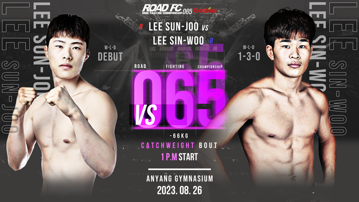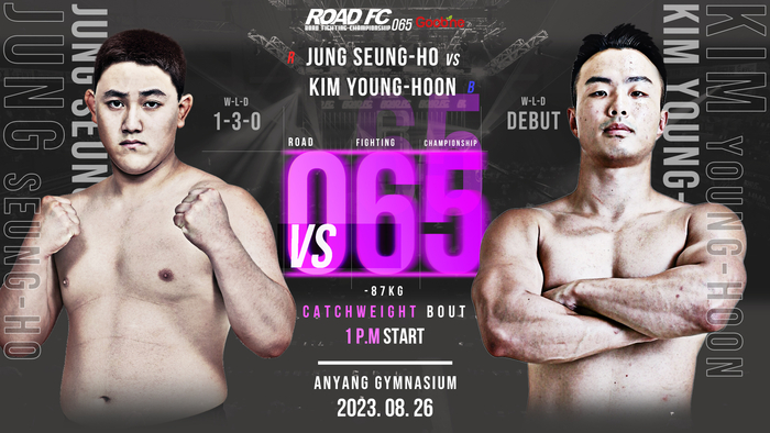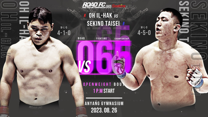 한편 ‘굽네 로드FC 065’는 오는 8월 26일 오후 1시 안양 실내체육관에서 열린다. 티켓은 인터파크티켓에서 2층인 일반석(비지정석) 8만 원, 1층 케이지 주변 VIP석 100만 원, VVIP석은 300만 원으로 판매한다. TV 생중계는 스포티비, 온라인 생중계는 다음 스포츠, 카카오TV, 아프리카TV에서 진행된다.