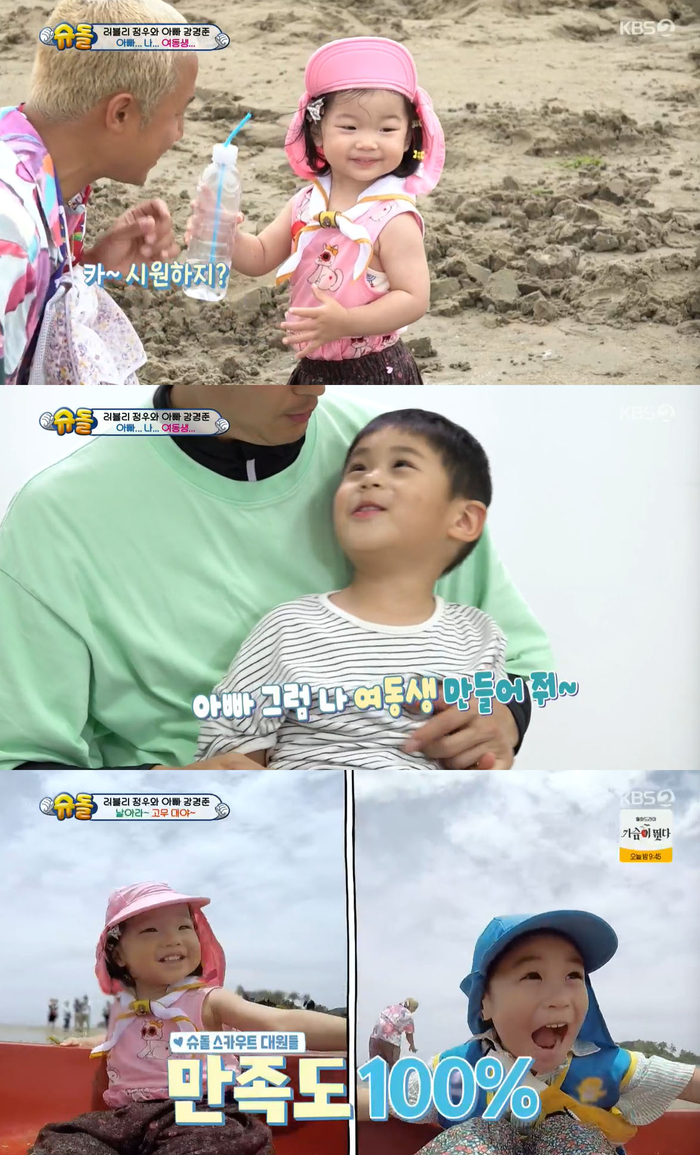 25일 방송된 KBS2 ‘슈퍼맨이 돌아왔다’(이하 ‘슈돌’)에서 ‘2023 새만금 세계 스카우트잼버리 대회’가 열리는 전북 부안을 찾은 강경준 부자의 모습이 그려졌다.