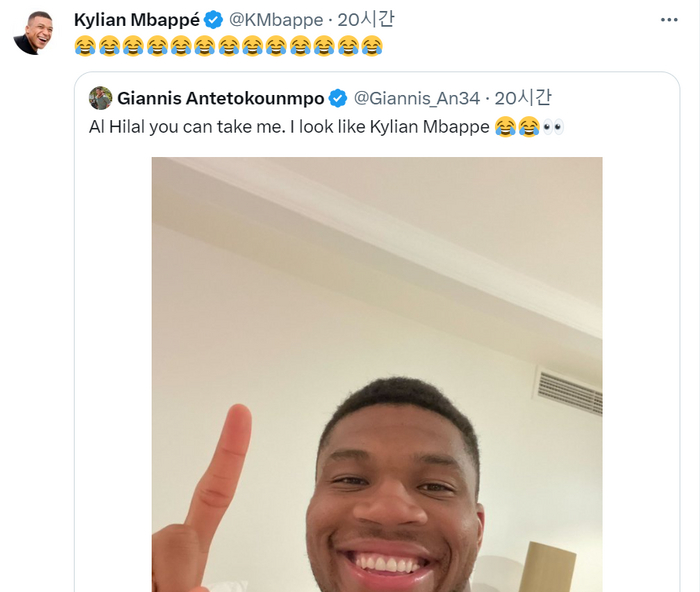 자신의 상황에 대해 침묵하던 음바페는 어떤 멘트 없이 웃다가 눈물이 나는 이모티콘을 덧붙였다. 음바페의 행보는 모든 이들의 관심사가 된 모양이다.