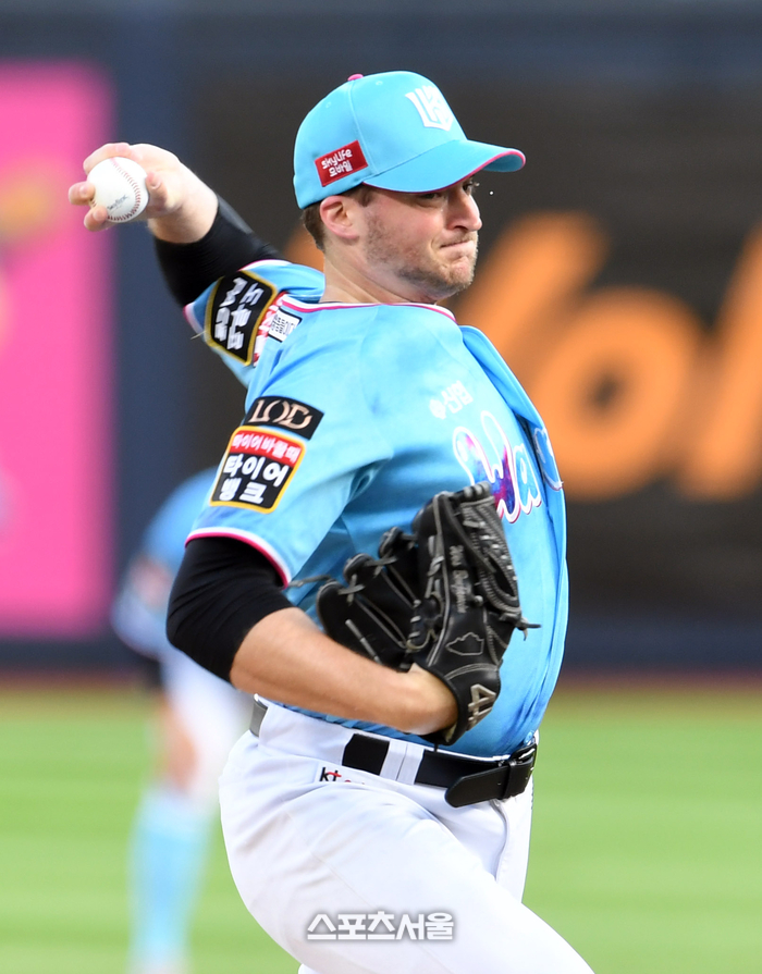 한국어로 각오를 밝혀달라는 질문에 조금의 망설임도 없었다. 지난해 KT와 계약을 체결한 시점부터 한국어를 꾸준히 공부했고 어느덧 모든 글자를 읽을 정도로 실력이 늘었다. 취재진과 인터뷰에서 통역을 거치기 전 유심히 질문을 듣고 이해하려는 모습이 눈에 띄었다. 투수로서 기량만큼 한국어도 빠르게 향상되고 있는 KT 선발 투수 웨스 벤자민(30) 얘기다.