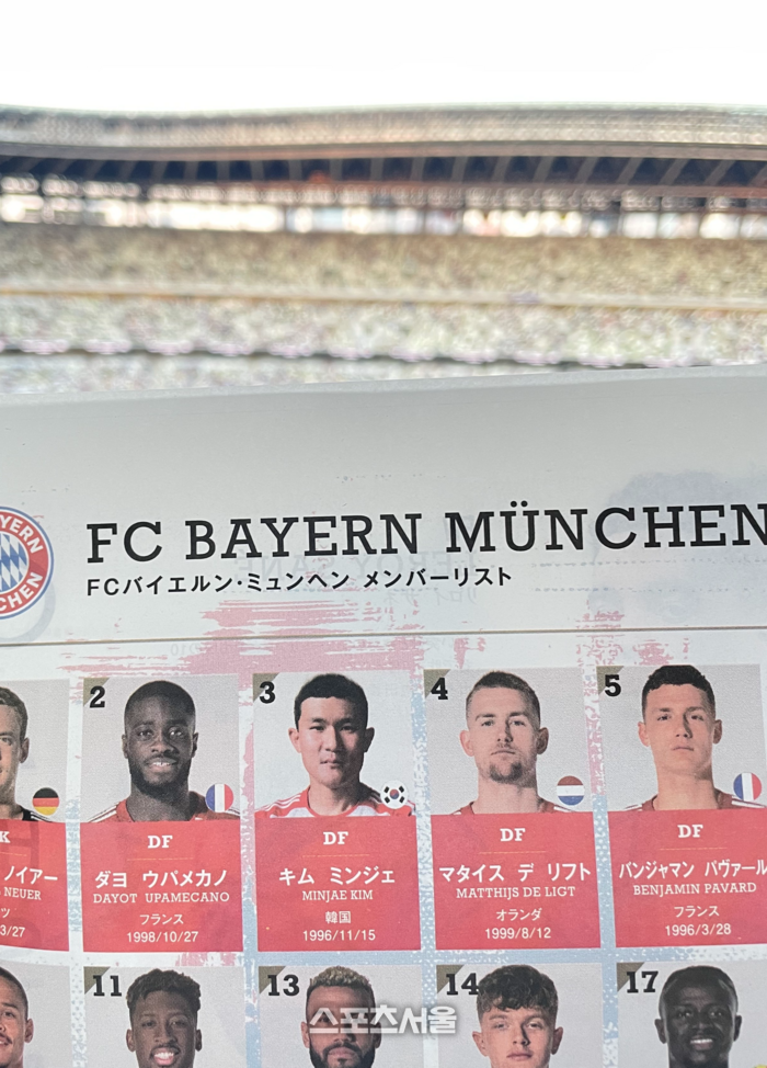 토마스 투헬 바이에른 뮌헨 감독의 예고대로 김민재는 결장한다. 아예 명단에서 빠졌다. 비시즌 기간 3주 동안 기초군사훈려을 받아 몸 상태가 온전하지 않은 만큼 일단 휴식을 취한다. 김민재와 함께 주전을 꾸릴 것으로 예상되는 마티아스 더 리흐트도 출전하지 않는다.