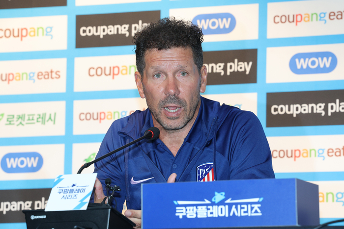 아틀레티코 마드리드(스페인)는 27일 서울월드컵경기장에서 팀 K리그와 쿠팡플레이 시리즈 친선전을 치른다. 경기를 하루 앞둔 26일, 디에고 시메오네 감독과 수비수 코케가 공식 기자회견에 참석했다.