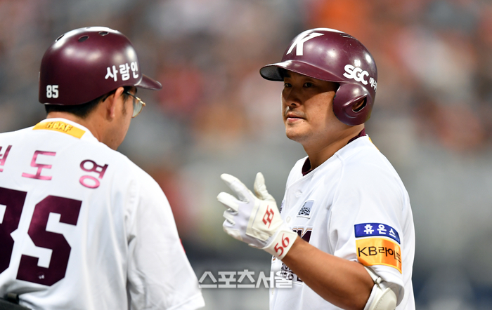 키움 9번타자 이지영이 26일 고척스카이돔에서 열린 2023 프로야구 키움히어로즈와 한화이글스의 경기 3회말 선두타자 안타로 출루하고 있다. 2023.07.26.