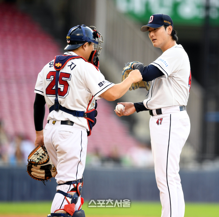 이어 김민석의 투수 정면 타구가 곽빈의 글러브를 맞고 유격수쪽으로 굴절됐다. 타구를 쫓아가던 박준영은 역동작에 걸릴 수밖에 없었고, 타구가 느리게 굴러간 탓에 다시 두 점을 빼앗겼다. 2루수 이유찬도 두 차례 펌블로 흐름을 끊지 못하는 등 젊은 야수진에서 우려했던 장면이 나왔다.