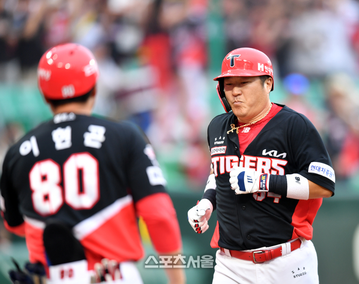 2회에 상대 실책으로 3루주자 나성범이 홈을 밟아 한 점을 추가한 KIA는 4회 또다시 상대 수비 실책으로 3루주자 김도영이 홈을 밟아 8-0으로 달아났다.