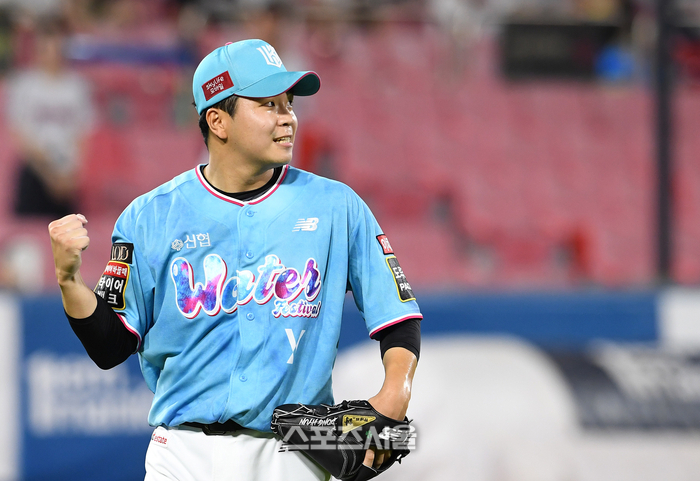 KT 위즈 손동현이 26일 수원 KT 위즈파크에서 열린 2023 KBO리그 LG 트윈스와 경기 12회초 2사 1루 상황에서 LG 신민재를 삼진 아웃으로 잡아낸 뒤 주먹을 불끈 쥐며 기뻐하고 있다. 손동현은 3이닝 무실점의 호투를 펼쳤다. 2023. 7. 26. 수원 | 박진업기자 upandup@sportsseoul.com