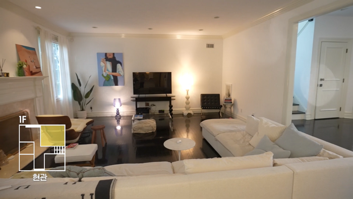 다음으로 거실을 소개했다. TV 보는 걸 좋아한다는 손태영은 “항상 여기 앉아서 (TV를 보고) 밖에 눈이 오면 저 창으로 찍는다”라고 밝혔다. 벽난로도 있었다.