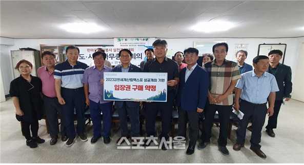 [스포츠서울ㅣ춘천=김기원 기자] (재)강원세계산림엑스포 조직위원회(위원장 김진태)는 7월 27일(목) 강원특별자치도 행정동우회(회장 이우식) 사무실에서 『2023 강원세계산림엑스포』 성공개최 퍼포먼스 및 입장권 사전구매 약정식을 체결했다.