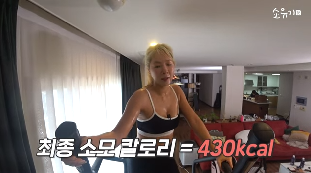 30분을 채운 소유는 “총 430칼로리를 태웠다”며 “처음 하시는 분들이 30분은 힘들 수 있다. 그래도 최소 15분은 타야 하니까. 15분은 일단 해보고 몇 번 타보니 적응이 됐다, 평소보다 덜 힘들면 5분씩 늘려서”라고 운동을 격려했다.
