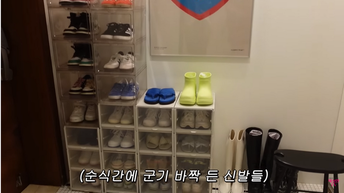 신발장으로 향한 채정안은 최근 산 운동화를 꺼내며 “사놓고 까먹고 있었다. 산지 석 달도 넘었는데 이걸 이제 처음 신었다”라고 말했다. 그는 “나와 있는 신발만 신으니까 그렇다. 이런 내 환경이 문제가 있다”라며 통일감 없이 진열된 신발장에 한숨을 쉬었다.