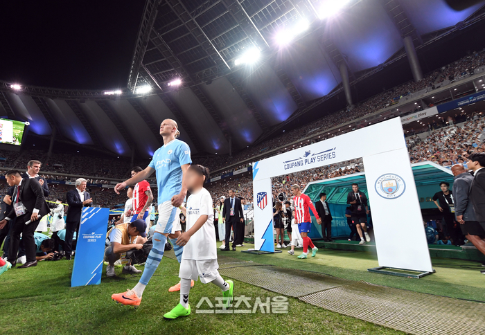 맨체스터시티의 엘링 홀란이 30일 서울월드컵경기장에서 열린 쿠팡플레이 시리즈 아틀레티코 마드리드와 경기에 앞서 그라운드에 입장하고 있다. 2023. 7. 30. 박진업기자 upandup@sportsseoul.com