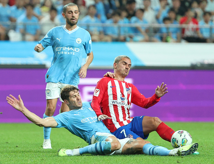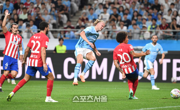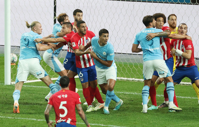 지난 시즌 트레블(3관왕)을 달성한 잉글랜드 프리미어리그(EPL)의 맨체스터시티(맨시티)와 스페인 라 리가 정상급 클럽 아틀레티코 마드리드(ATM)는 30일 서울월드컵경기장에서 열린 쿠팡플레이 시리즈 2차전 맞대결에서 격돌했다.