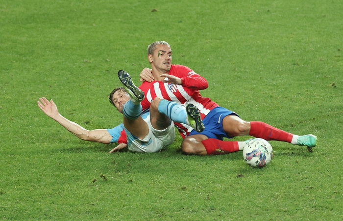 절대 가볍지 않았다. 양 팀 선수는 강하게 충돌했다. 특히 맨시티 왼쪽 공격을 책임진 그릴리시와 ATM 오른쪽 수비수 세사르 아스필리쿠에타가 여러 번 볼다툼을 벌였다. 올여름 첼시를 떠나 ATM에 입단한 아스필리쿠에타는 디에고 시메오네 감독에게 어필이라도 하려는 듯 강한 투쟁심을 보였다. 그릴리시가 돌파하려고 할 때마다 강한 몸싸움과 태클로 맞섰다. 결국 그는 전반 15분 그릴리시와 볼 경합하다가 거친 동작으로 옐로 카드를 받았다.