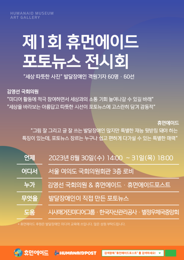 한편, 휴먼에이드와 휴먼에이드포스트는 오는 9월 초 제7회 포토뉴스 공모전을 실시할 예정이다.