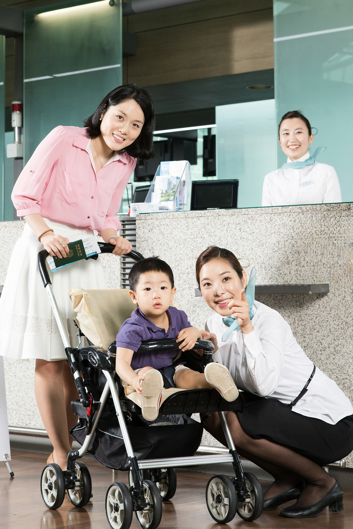 먼저 유모차의 경우 무료 운송 서비스를 이용할 수 있다. 체크인 카운터나 탑승구에서 신청할 수 있는데 탑승 직전 탑승교에서 항공사 직원에게 맡기면 유모차를 비닐에 씌워 안전하게 도착지 공항까지 옮겨준다. 단 컵홀더 같은 유모차 액세서리는 파손 및 분실 우려가 있으니 따로 떼어 보관하는 게 좋다. 또한 가로·세로·높이 세 변의 합이 115cm 이하이고 일자형으로 완전히 접었을 때 가로 20·세로 20·높이 100cm인 휴대용 유모차는 기내 반입도 가능하다.