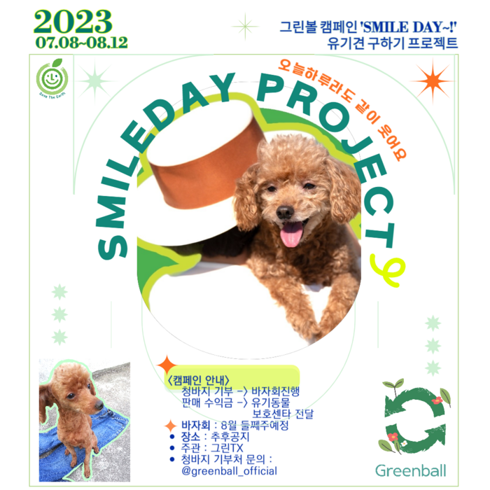 비영리 환경보호 활동단체 그린볼 캠페인의 2023 유기견 구하기 프로젝트 ‘스마일데이’(smile day)가 눈길을 끌고 있다.