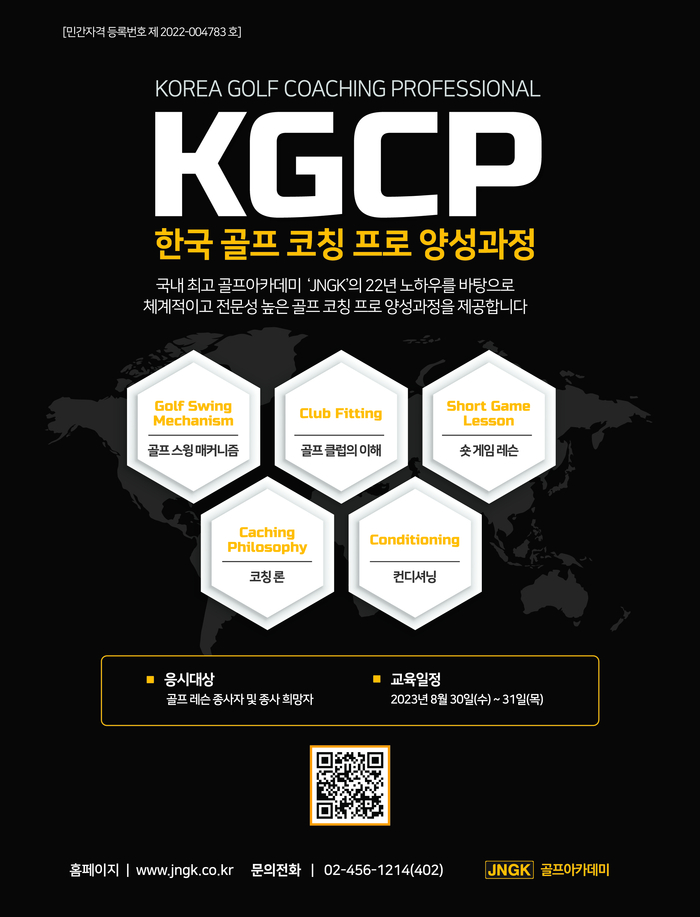골프코칭프로 양성 과정은 JNGK 아카데미가 1999년부터 20년 이상 검증하고 축적한 다양한 레슨 교습 데이터를 연구·분석해 구축한 체계화한 시스템을 바탕으로 레슨프로에게 꼭 필요한 내용을 알려준다. 지난 3년여간 준비해 레슨 현장에 초점을 맞춘 골프코칭(레슨) 전문가 양성 프로그램을 선보인다.