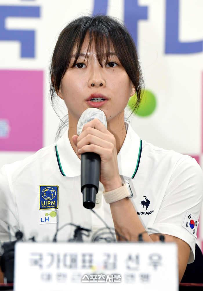 근대5종 국가대표팀의 김선우가 2일 서울 송파구 올림픽파크텔에서 진행된 항저우 아시안게임 근대5종 국가대표 미디어데이 행사에서 취재진의 질문에 답을 하고 있다. 2023. 8. 2. 박진업기자 upandup@sportsseoul.com
