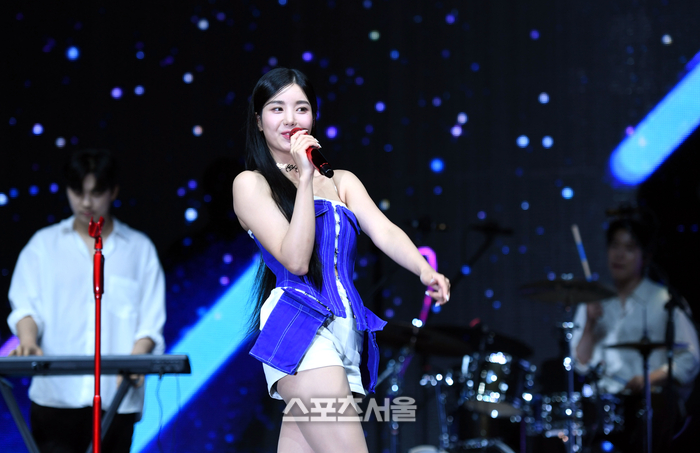 가수 권은비가 2일 서울 용산 블루스퀘어에서 열린 첫 번째 싱글 '더 플래시(The Flash)' 미디어 쇼케이스에서 수록곡 '뷰티풀 나이트'를 부르고 있다. 2023. 8. 2. 최승섭기자 thunder@sportsseoul.com