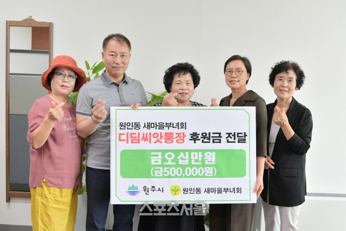[스포츠서울ㅣ원주=김기원 기자] 원인동 새마을부녀회(회장 박숙희)는 지난 2일 시청 복지국장실에서 디딤씨앗통장 적립 후원금 50만 원을 전달했다.
