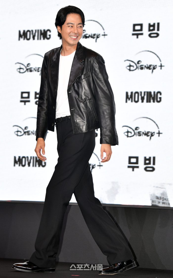 조인성이 3일 삼성동 그랜드인터콘티넨탈 파르나스에서 열린 디즈니플러스 새 시리즈 ‘무빙’ 제작발표회 무대에 올라 포토타임을 갖고 있다. ‘무빙’은 강풀 원작의 웹툰을 각색한 초능력자들을 다룬 히어로물로 8월 9일 디즈니플러스를 통해 전격 공개된다. 출연: 조인성, 류승룡, 한효주, 차태현, 류승범, 김성균,김희원, 문성근, 이정하, 양동근,고윤정, 김도훈. 2023.08.03.