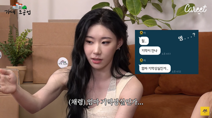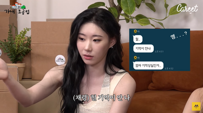 채령은 “어렸을 때 사진이 필요해서 단톡방에 ‘나 어렸을 적 사진 갖고 있는 사람 좀 보내줘’ 했는데, 언니가 사진을 보내줬다”라며 “‘이거 언니 아니야?’라고 했더니 (이채연이) ‘아니야 이거 너야’라더라. 그래서 엄마한테 물어봤더니 엄마가 ‘헐 기억이 안 나. 엄마 기억상실인가’라고 하셨다”라고 말해 웃음을 안겼다.