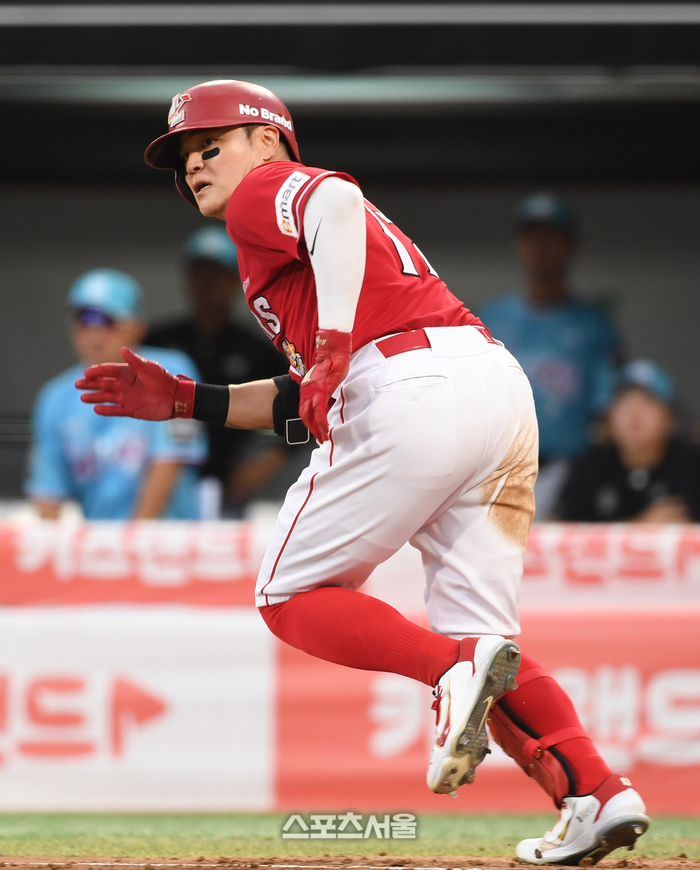 SSG 랜더스 추신수가 3일 수원 KT위즈파크에서 열린 2023 KBO리그 KT 위즈와 경기 3회초 1사 2루 상황에서 KT 선발 엄상백을 상대로 1타점 2루타를 치고 있다. 1회초에 이어 추신수의 두 번째 2루타로 멀티 히트. 2023. 8. 3. 수원 | 박진업기자 upandup@spotsseoul.com
