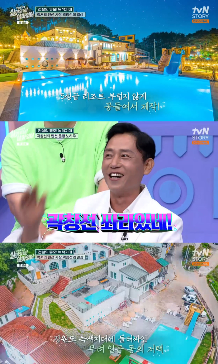곽창선은 해발 600m 횡성 산 속에 위치한 2400평 규모의 초호화 펜션을 운영 중이었다. 리조트급의 펜션은 총 7동 규모로 5성급 리조트 부럽지 않은 수영장에 스키슬로프까지 갖춘 모습이었다.