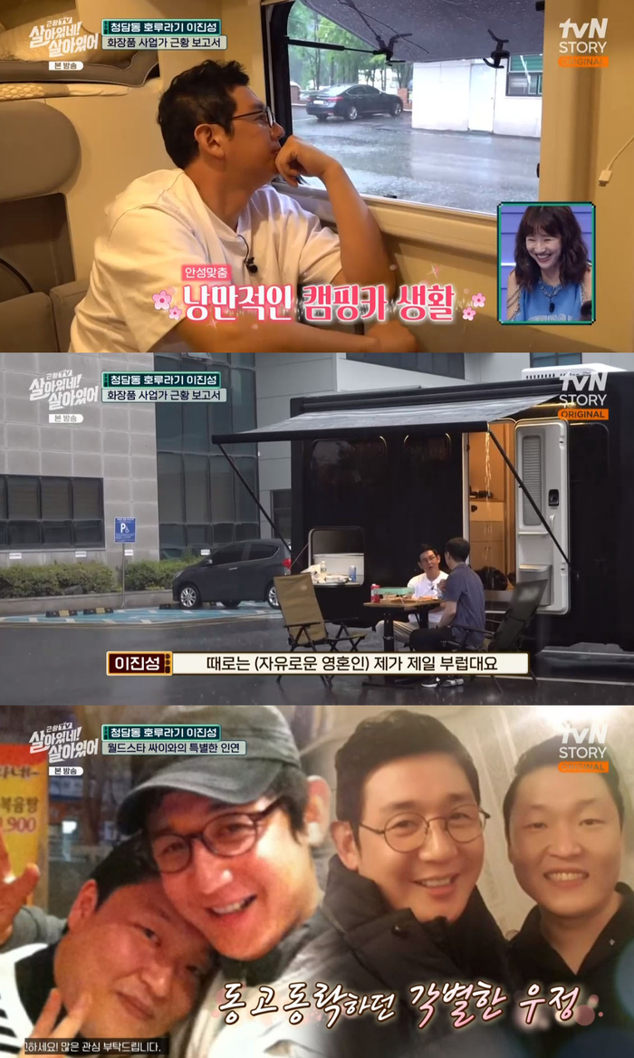 비오는 날 낭만 가득한 캠핑카에서 시간을 보낸 그는 주차장에서 바로 고기를 구우며 도심 우중캠핑을 즐겼다. 활짝 웃으며 퇴근하는 직원들과 고기를 먹는 낭만을 즐겼다. 그는 “사람들이 자유롭게 사는 나를 부럽다고 한다”라며 웃었다.
