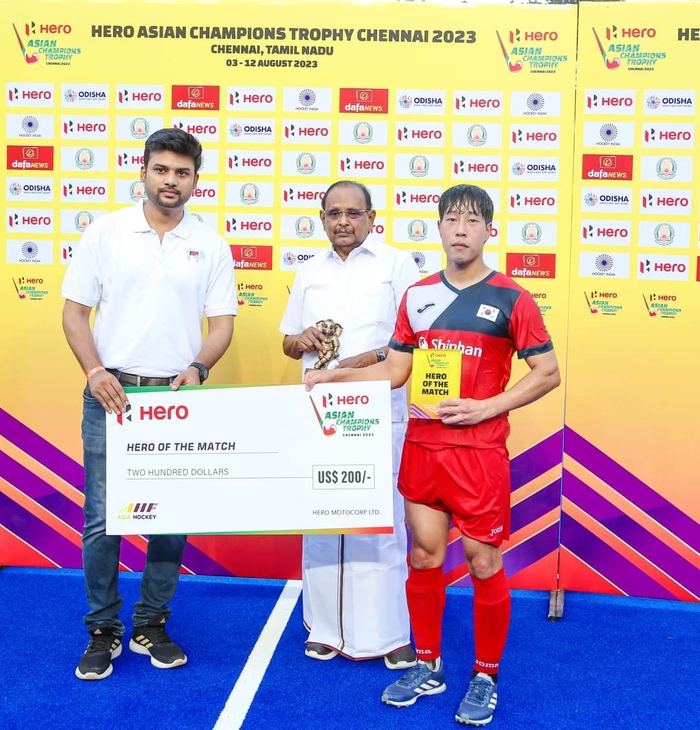 지난 대회 디펜딩 챔피언인 한국은 인도 첸나이 라다크리쉬난 메이어 경기장에서 열린 일본과의 경기에서 2-1로 승리하며 아시안 챔피언스 트로피 첫 경기를 승리로 장식했다. 경기 수훈선수(Hero of the Match)로 현지광(성남시청)이 선정됐다.