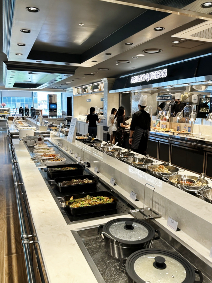 애슐리퀸즈는 총 200종의 메뉴를 통해 만나는 월드 와이드 뷔페 컨셉의 외식브랜드로 즉석 라이브 그릴바와 신선한 스시와 시푸드, 피자, 파스타 그리고 한식, 바비큐, 샐러드까지 즐길 수 있는 애슐리의 프리미엄 모델이다.