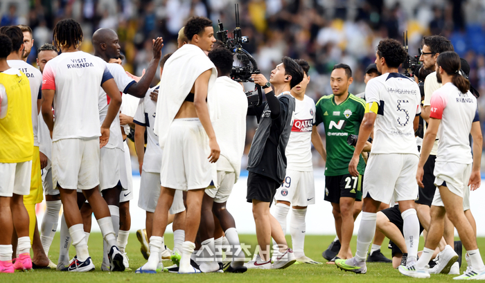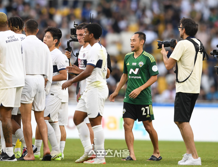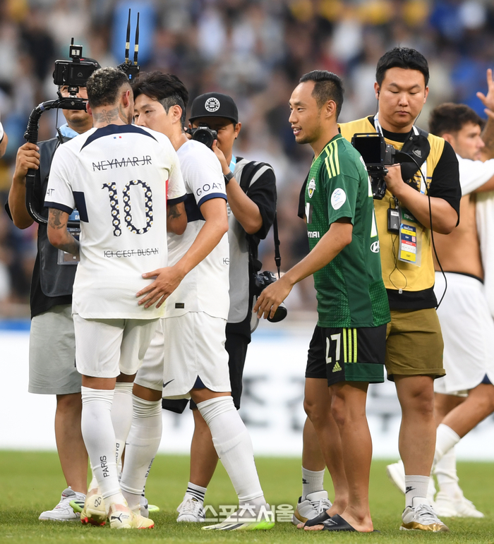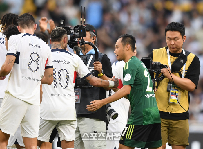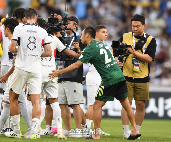 아쉬움을 뒤로하고 문선민은 네이마르와 이강인과 악수 후 자리로 돌아갔다.