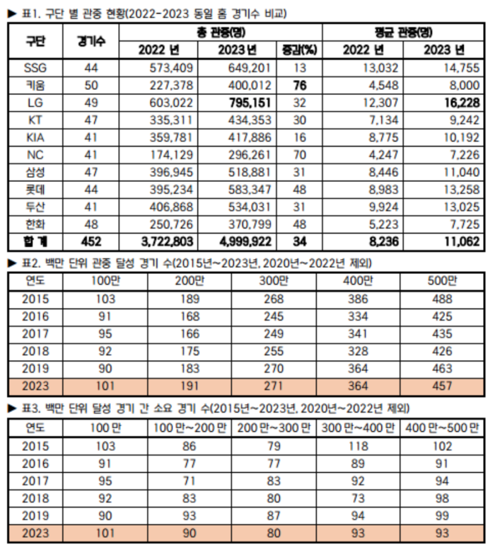 3일까지의 전체 평균 관중 수도 1만1062명으로 전년 동일 경기 수 대비 34%가 증가했다.