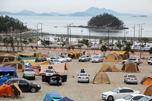 땅끝마을 송호해수욕장에 위치한 오토캠핑장에는 땅끝마을 관광을 겸한 가족단위 캠핑객들이 줄을 잇고 있다.