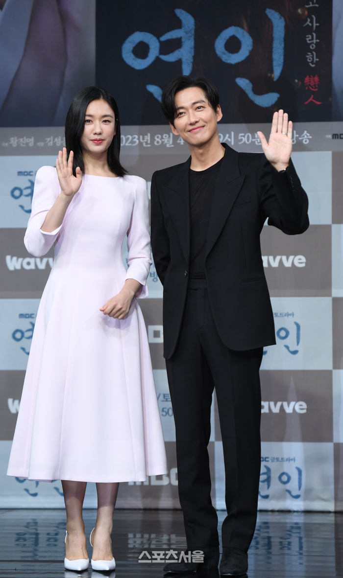 안은진, 남궁민이 4일 서울 상암동 MBC에서 열린 드라마 ‘연인’ 제작발표회에서 포토타임을 갖고 있다. ‘연인’은 병자호란을 겪으며 엇갈리는 연인들의 사랑과 백성들의 생명력을 다룬 휴먼역사멜로드라마로 4일 오후 9시 50분 첫 방송된다. 2023. 8. 4. 최승섭기자 thunder@sportsseoul.com