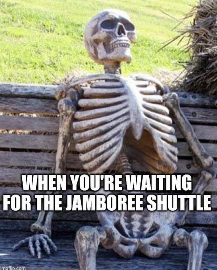 다음으로 폭염과 관련한 밈이다. 사진에는 백골이 벤치에 앉아 있는 모습이 담겼다. 사진 설명에는 “당신이 잼버리 셔틀버스를 기다리고 있는 모습”이라고 적혀 있다.