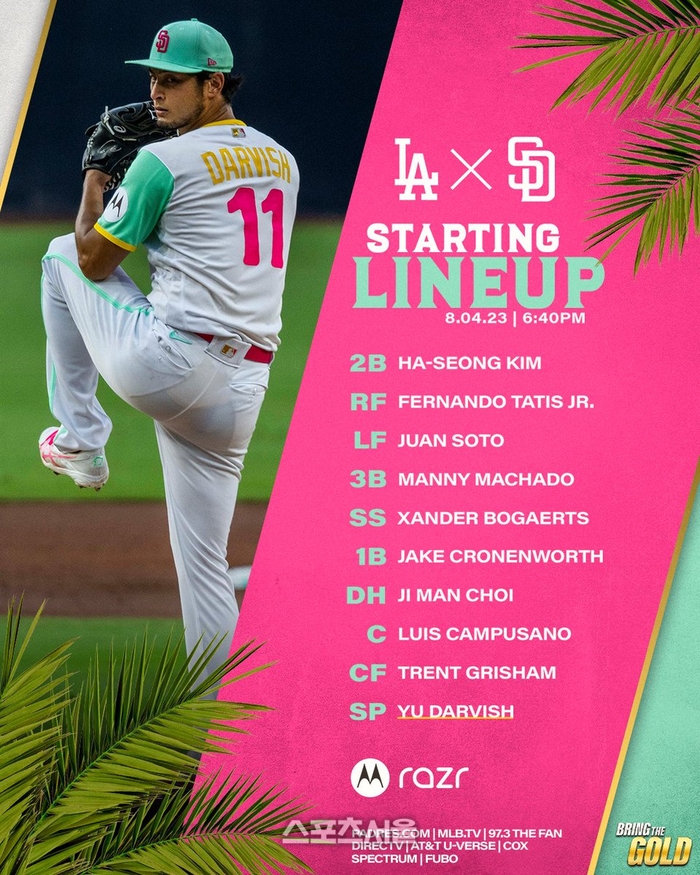 [스포츠서울 | 윤세호기자] 후반기 대역전을 노리는 샌디에이고가 라이벌 LA 다저스에 맞서 코리안 빅리거 2명을 라인업에 올렸다.